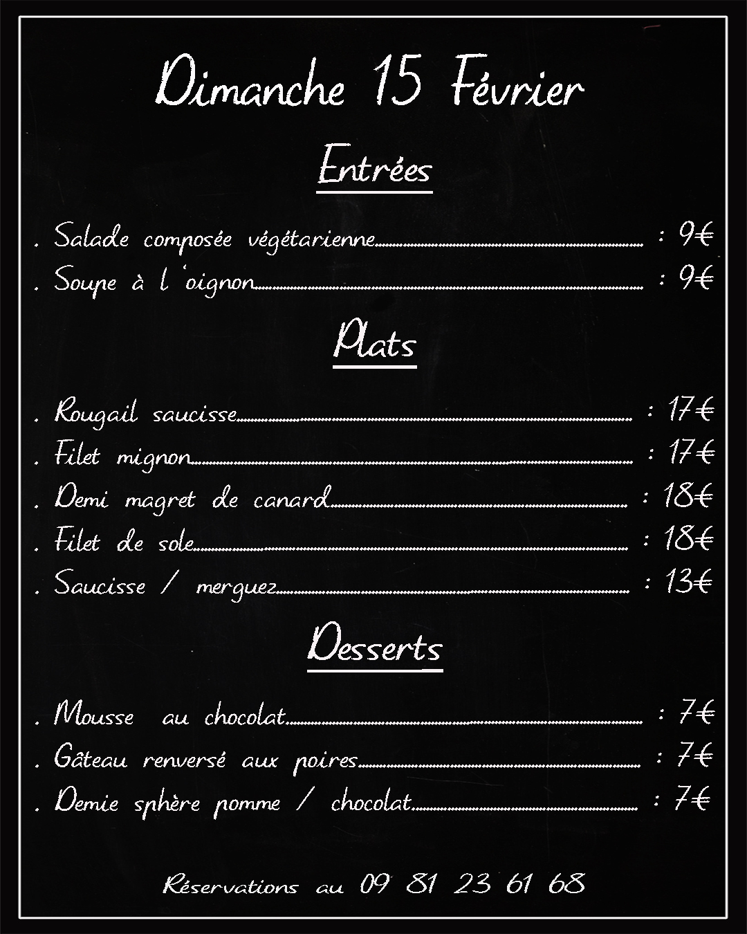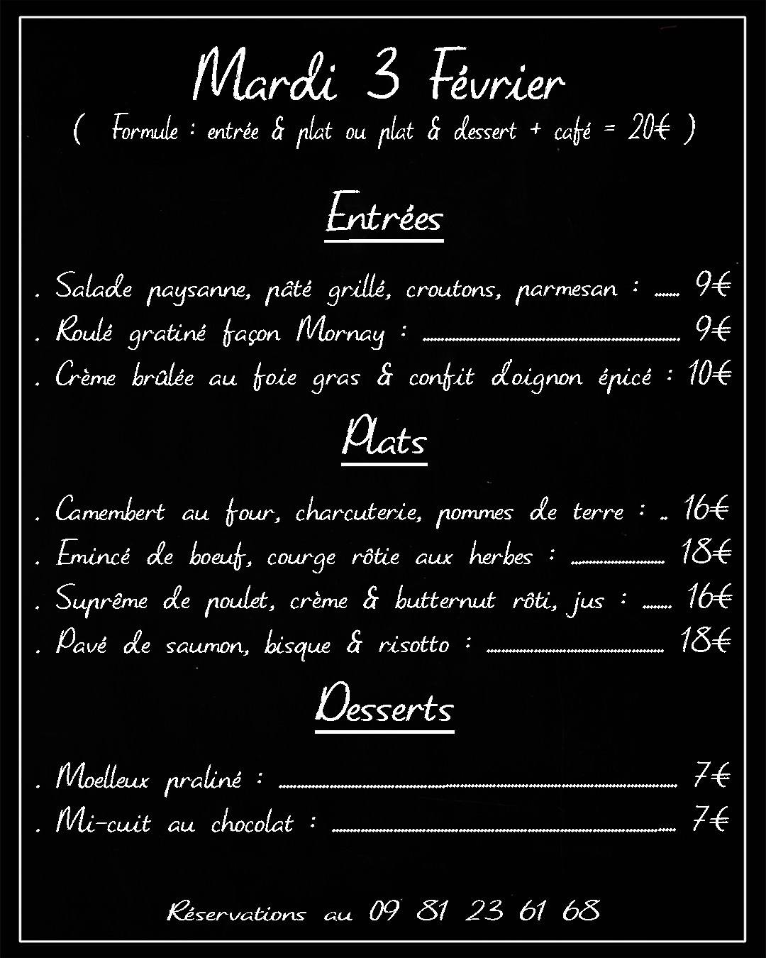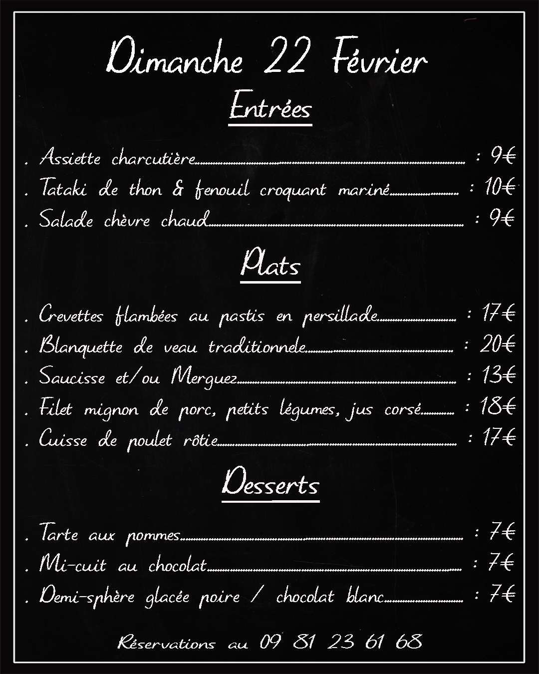 Les réservations se font par téléphone au