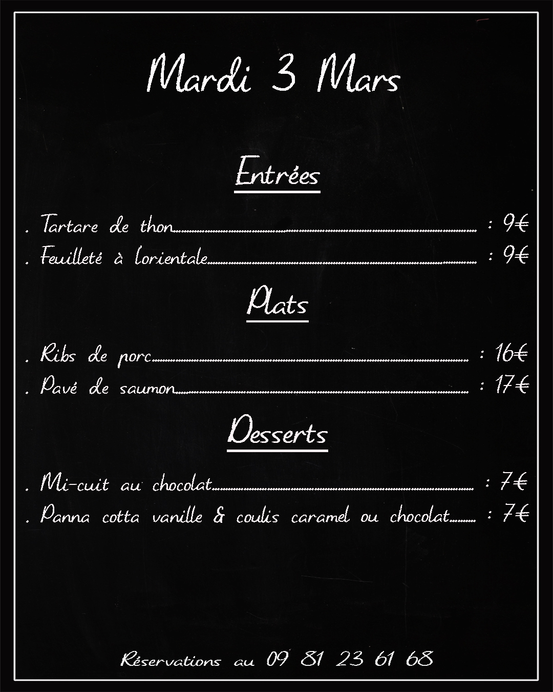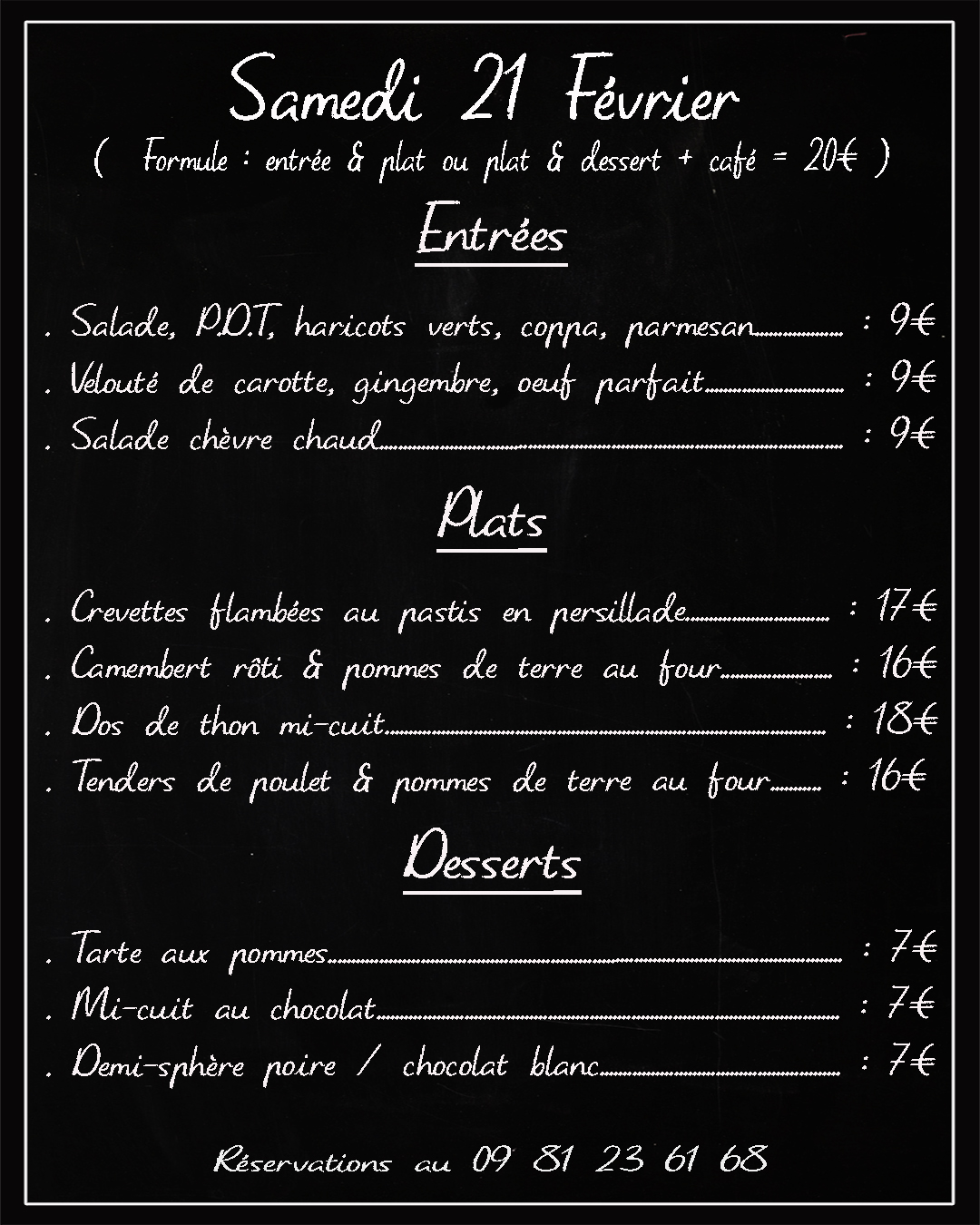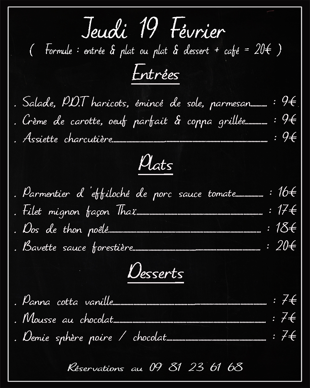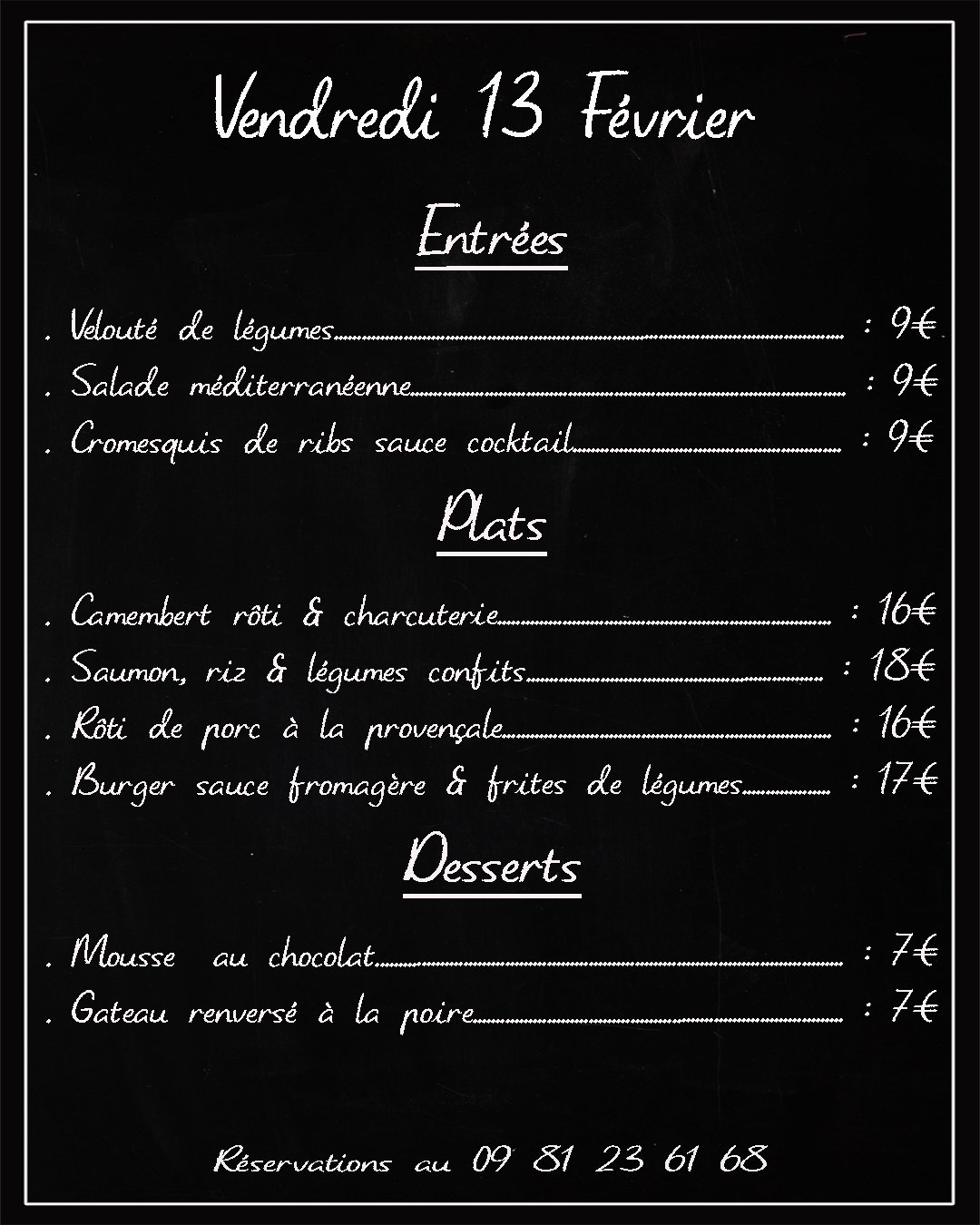 Les réservations se font par téléphone au